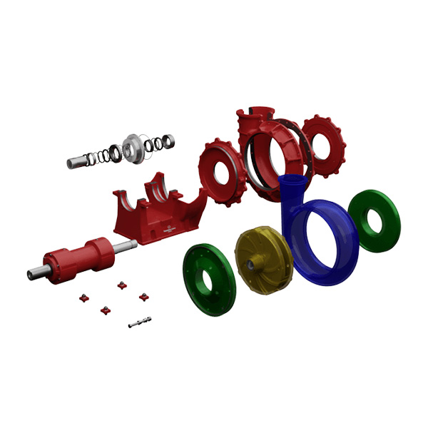 Конструкция включает одноступенчатые коррозионностойкие насосы с регулируемым зазором на всасывании. Все элементы, контактирующие с перекачиваемой средой, имеют защитную эластичную облицовку из резины или полиуретана.